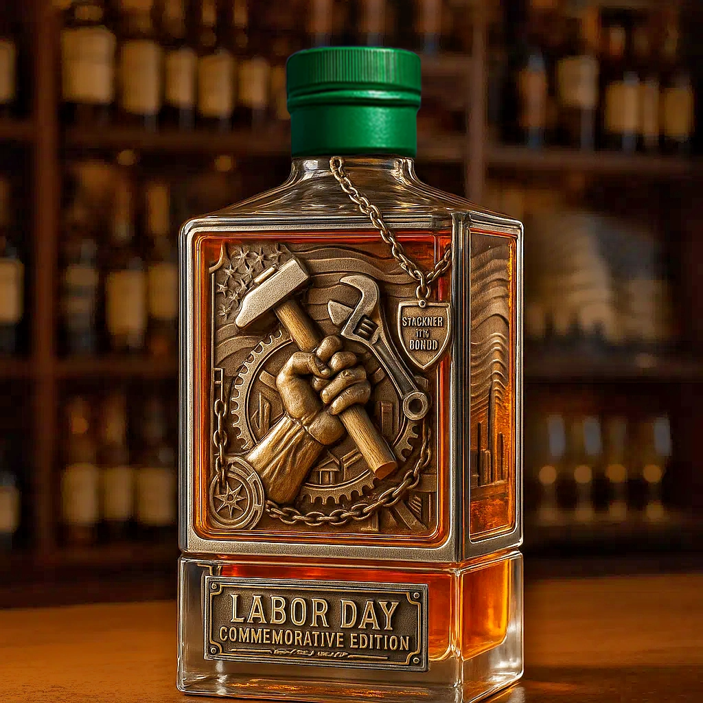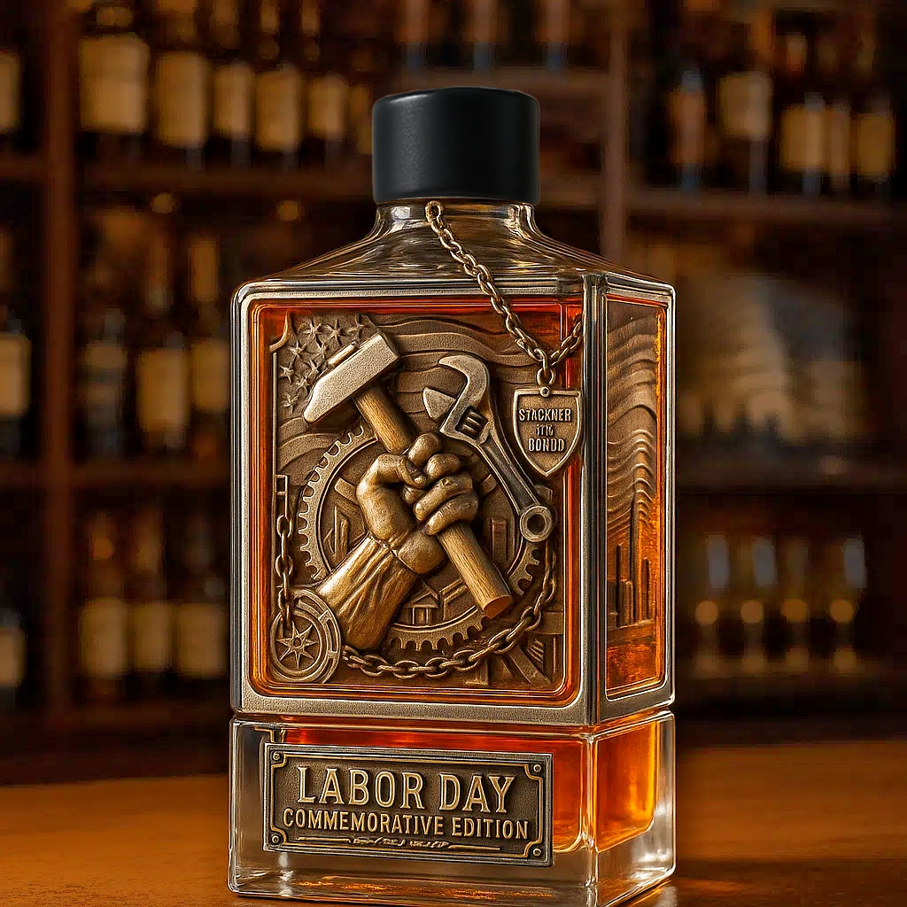🔥 Celebrate the spirit of hard work with this Labor Day Commemorative Whiskey Bottle — a bold blend of industrial artistry and timeless American pride.