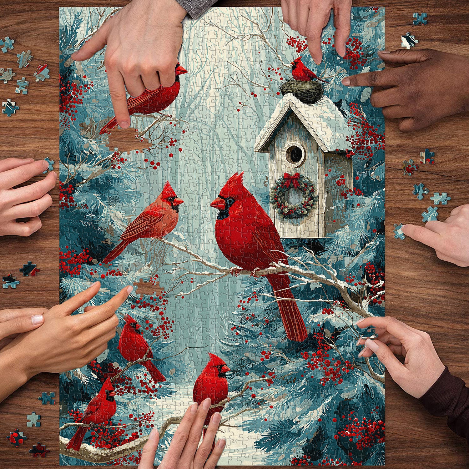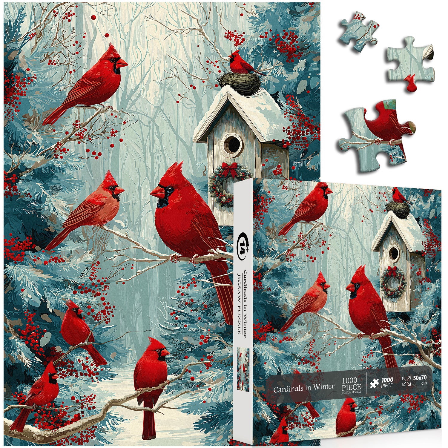 1*Cardinals in Winter Jigsaw Puzzle 1000 Pieces