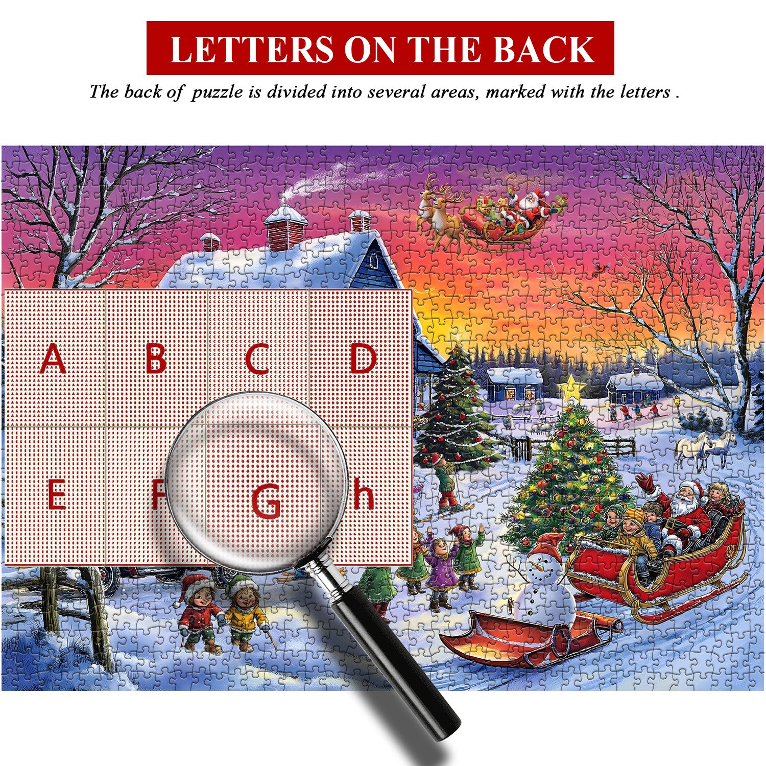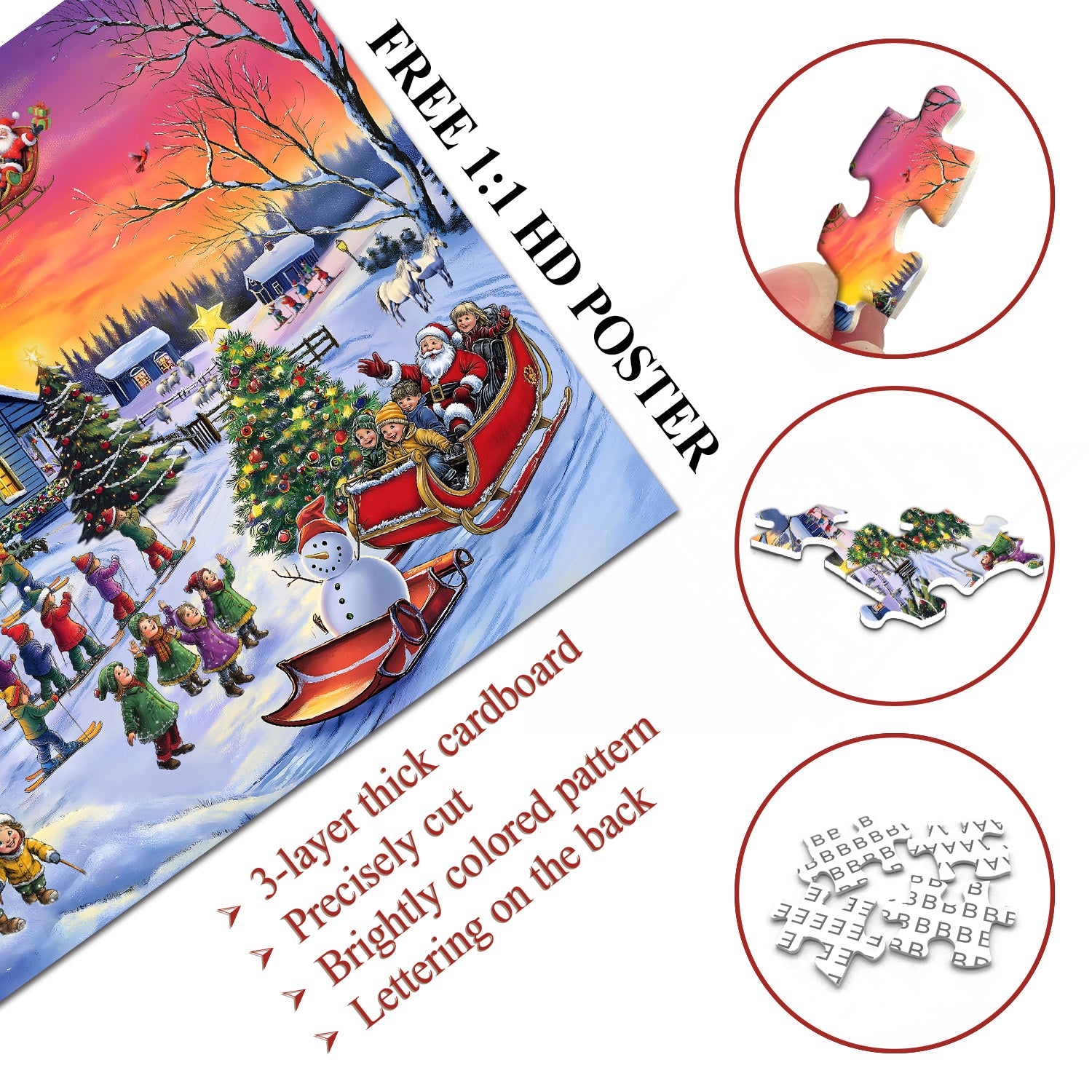 Lively and Detailed Holiday Imagery: The setting sun casts a warm glow over this cheerful winter scene, adding to the festive atmosphere. Each puzzle piece reveals intricate holiday details, from the playful children to the excited crowd, bringing the Christmas spirit to life.