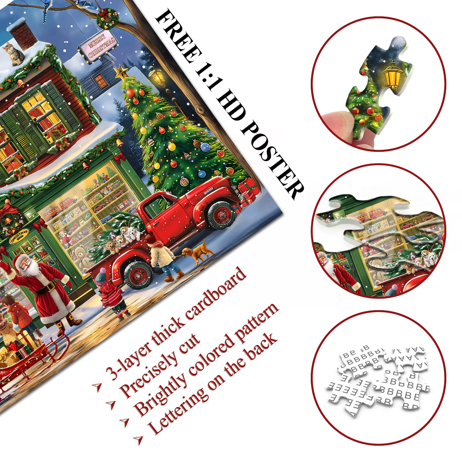High-Quality Design: This puzzle features a beautifully detailed, cutout-style illustration on a crisp white background, enhancing the vibrant colors and creating a visually stunning festive artwork that captures the essence of Christmas.