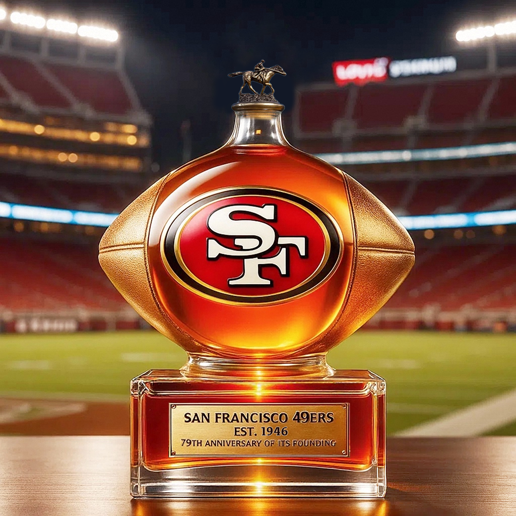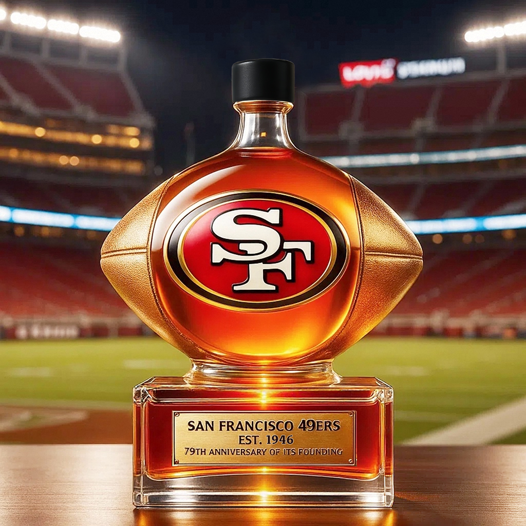 Celebrate 79 years of 49ers dominance with this anniversary whiskey decanter, sculpted as a regal golden football — a shining tribute to the dynasty, the devotion, and the roar of Levi’s Stadium.