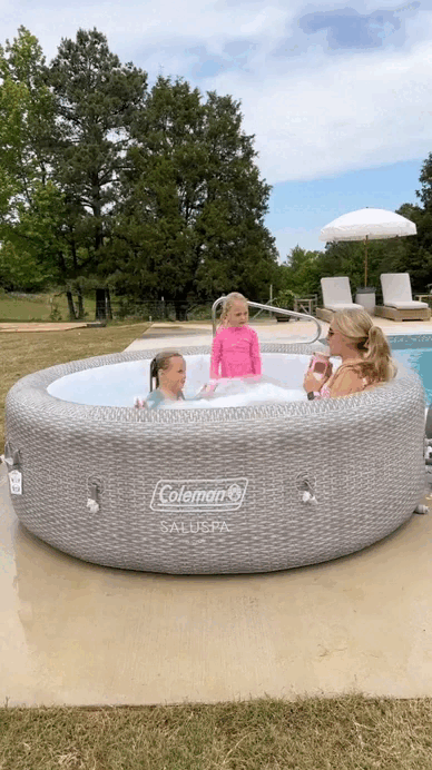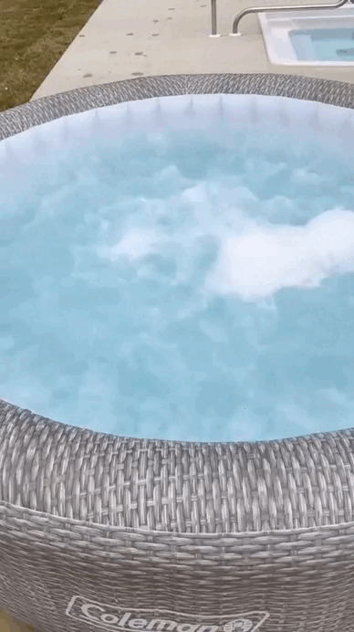 This hot tub offers a soothing massage experience for up to seven people in a spacious, round design. Simply connect the pump and watch it inflate. This hot tub features an AirJet system with 180 jets that release bubbles from the bottom of the spa to create a warm, bubbling hot bath environment. These soothing bubbles will help you relax in the comfort of your own home.