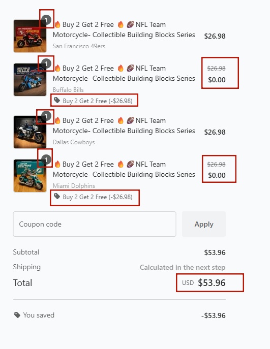 Add 4 Gifts to the shopping cart, and get 2 Gifts for free!!!