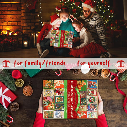 XMAS PUZZLE:24 retro posters full of Christmas spirit. When you complete this puzzle masterpiece, you can proudly display it on your wall as proof of your puzzle journey. Let it decorate your space with its unique charm. Are you ready to express your love for puzzles? The ultimate puzzle awaits you!